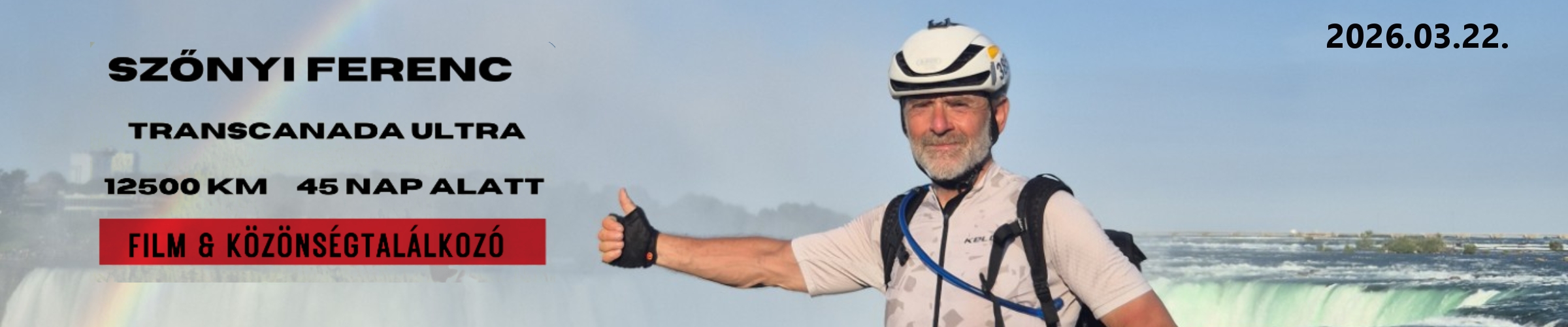 Csatlakozz egy különleges, inspiráló estére, ahol nemcsak egy hihetetlen sportteljesítmény történetét láthatod a vásznon, hanem magát az embert is megismerheted mögötte! A TransCanada Ultra a komáromi vasember, Szőnyi Ferenc elképesztő, 12 500 kilométeres kanadai küldetését mutatja be, amelyet 45 nap, 3 óra és 14 perc alatt teljesített – ezzel világrekordot döntve. Egy emberi történet a határok feszegetéséről, a hitről, a kitartásról és a soha fel nem adásról.